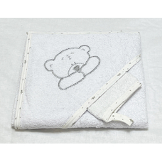 Полотенце с капюшоном и рукавичкой Вышивка (белый)