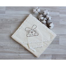 Полотенце с капюшоном и рукавичкой Вышивка (молочный)