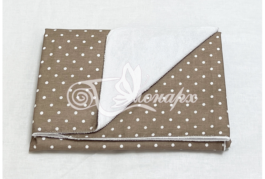 • Верхний слой – мулитон (изготовлена из - мягкой махры и непромокаемого слоя ПВХ). Благодаря такому строению на пеленке комфортно лежать (в отличие от клеенчатого или полиэтиленового непромокаемого слоя).