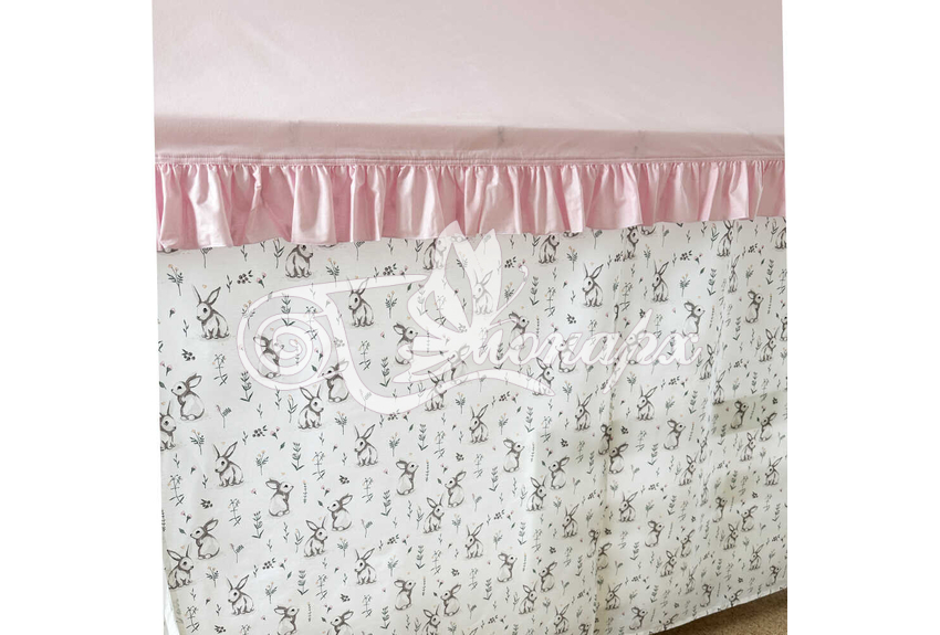 ширина - 137 см + 24 см на рюши (по 12 см на одну сторону). - Занавески с завязками (по 4 завязки на каждой занавеске) на переднюю сторону кроватки 2 шт.: