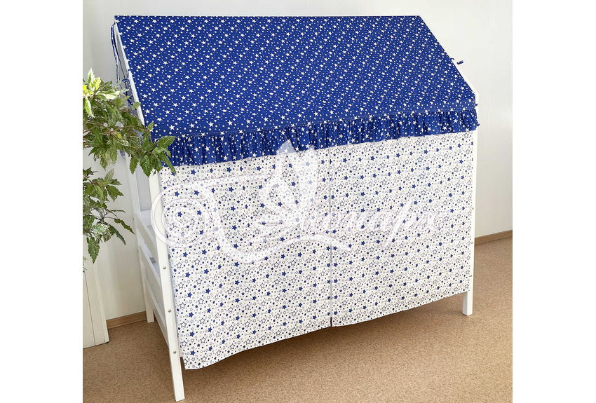 Крыша и шторы для кроватки домика ТД-9 купить в Иркутске.Теги: комплект в кроватку домик, текстиль для домика, крыша для домика